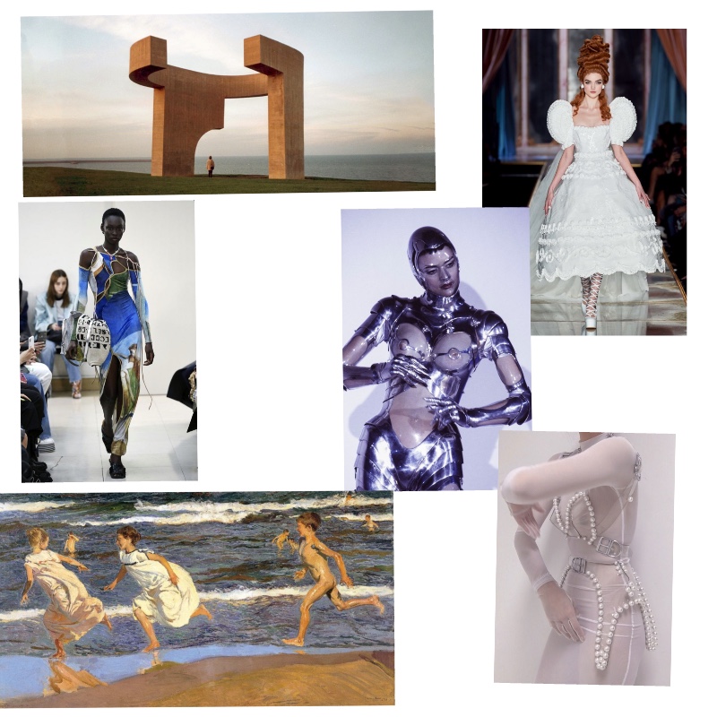 Moodboard references: Eduardo chillida, Mugler, Moschino, Joaquín Sorolla, pinterest images.